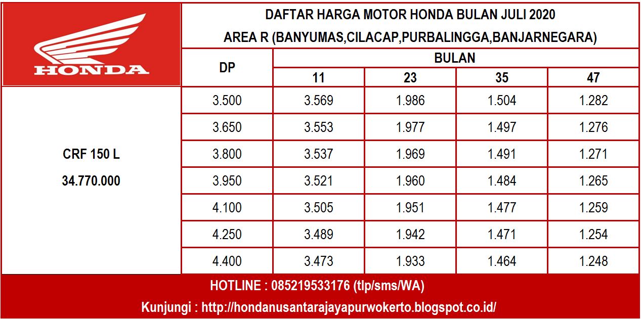 Selain harga Honda CRF 150 L Purwokerto terbaru